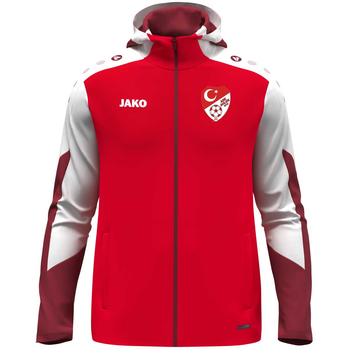 Stylische Kapuzenjacke mit Kontrastdetails und Keep Dry-Technologie. 100 % recyceltes Polyester – perfekt für Alltag, Training und Freizeit.